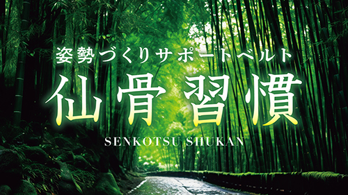 椎名先生考案の「ZEN呼吸法メソッド」は、『仙骨』が立った人間本来の自然で楽な姿勢を作ることがポイントとなります。この『仙骨』が立った状態をベルトを装着することで誰でも簡単に作れるようになるのが、姿勢づくりサポートベルト「仙骨習慣」(せんこつしゅうかん)です。